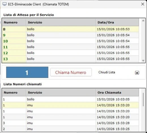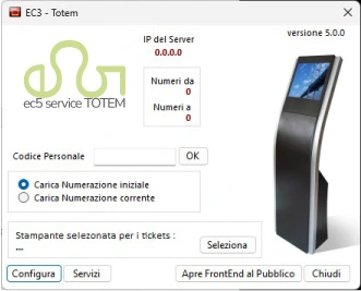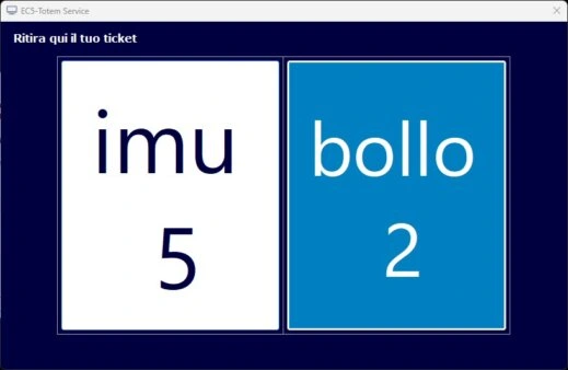 Utile a chi vuole distribuire i ticket delle varie code attraverso un PC dedicato, collegato a un monitor touch attraverso il quale l’avventore seleziona il servizio e ritira il proprio ticket emesso da una piccola stampante termica. Il software può essere installato anche su un Totem acquistabile da un rivenditore a scelta dell’utente.