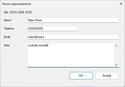 Il Modulo Agenda Appuntamenti consente la gestione delle prenotazioni.